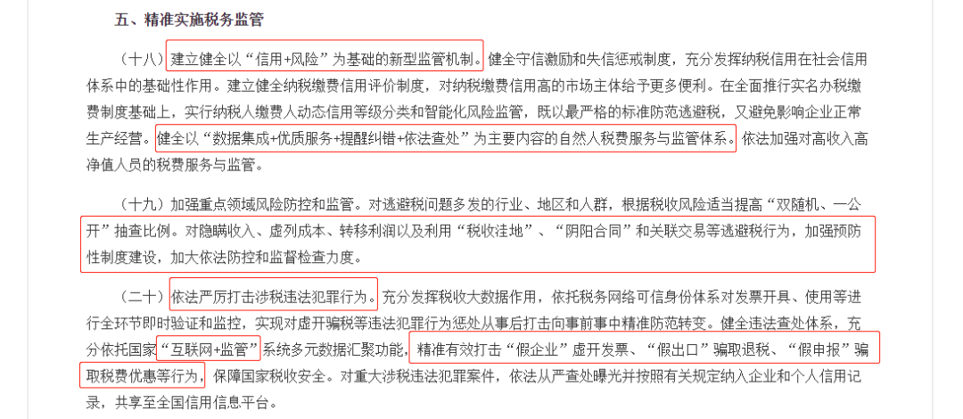 2、是否对金融企业、经济鉴证类中介机构等特殊行业进行核定征收;3、是否对设立分支机构的汇总纳税企业实行核定征收;5、对年收入和利润变化明显超过20%以上的企业,税务机关是否履行调整应纳税所得率的职责;1、严格落实对特定行业和一定规模以上的纳税人不得核定征收的要求。2、对现存核定征收企业,积极引导企业建账立制,尽快转为查账征收企业;3、对于年收入和利润额变化明显超过20%以上的企业,要切实调整应税所得率;4、对于总局和省局直接修改征管鉴定的企业,应采取相应措施加大核查和日常评估力度;5、关注核定征收企业的发票管控和注销管理情况,履行相应的征管职责。有些企业利用私户、微信、支付宝等收取货款来隐匿部分收入,或存在大额收款迟迟不开发票,或给客户多开发票等等,注意了,以后还这样操作可要小心了!金税四期不仅仅通过你申报的数据,来核实是否异常。可能还会通过企业银行账户、企业相关人员的银行账户、上下游企业相关账本数据、同行业收入、成本、利润情况等来稽查比对。且央行早已施行了大额现金管理试点,公转私、私转私都将会严查!(2)利润表里的利润总额与企业所得税申报表中的利润总额有出入;4、利用“税收洼地”、“阴阳合同”和关联交易等逃避税行为(1)“税收洼地”,某些公司利用当地增值税、企业所得税有奖励的政策、利用当地个人所得税核定征收的政策,注册“空壳公司”。今后将被严查。(2)“阴阳合同”,利用签订“阴阳合同”的方式隐瞒收入或虚列成本的方式行不通了,将被严查。(3)关联交易存在价格上的不公允,也将成为税务稽查的重点对象。①不管是为他人、为自己开这种发票属于虚开,当中间人介绍虚开发票也不行,甚至接受虚开发票的行为也不可以!②环开、对开发票,即A公司B公司互相开票,虽然没有少交税,但是没有真实业务,也属于虚开发票!国家充分依托“互联网+监管”系统多元数据汇聚功能.对那些没有实际经营业务只为虚开发票的“假企业”,没有实际出口只为骗取退税的“假出口”,没有具备条件只为骗取疫情防控税收优惠政策的“假申报”等行为被严厉打击,并充分曝光!金税四期上线后,企业库存会进一步的透明化,企业进多少货,出多少货,还剩多少货,可能比你自己还清楚,如果库存账实不一致,企业务必引起重视,及时查找原因。在此提醒企业一定要做好存货管理,统计好进销存,定期盘点库存,做好账实差异分析表,尽量避免库存账实不一致。有些公司为了避税,故意用现金/个人卡发放工资,一旦被查,明眼一看账务就是有问题。现在都什么时代了,还发现金,用这种方法避税,不就等于说公司有问题吗?试用期不入社保;代别人挂靠社保;未足额或未缴纳社保;员工自愿放弃社保,就没有给入;不签合同就不缴社保;档案未转就不给交社保等等。随着社保入税和即将到来的金税四期,社保这块会监管越来越严,以上违法行为也该收手了。(2)税负率异常,如果企业平均税负率上下浮动超过20%,税务机关就会对其进行重点调查;最后再次提醒企业老板和会计,国家要健全守信激励和失信惩戒制度。对重大涉税违法犯罪案件,依法从严查处曝光并按照有关规定纳入企业和个人信用记录,共享至全国信用信息平台。