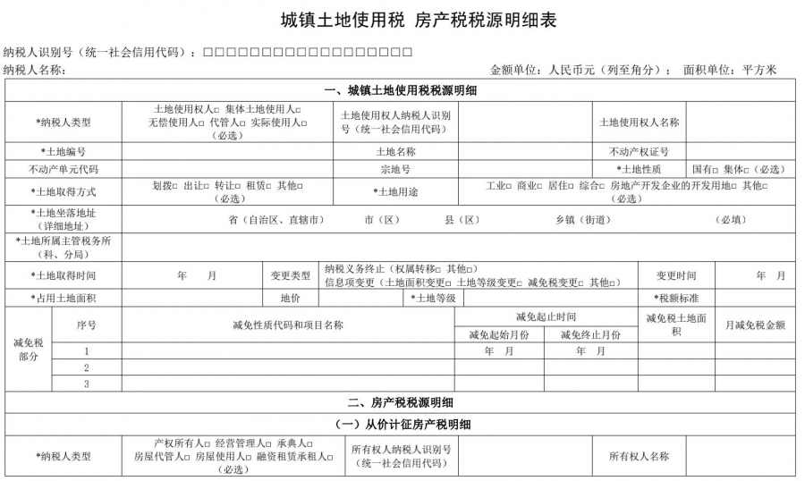 一、自2021年6月1日起,纳税人申报缴纳城镇土地使用税、房产税、车船税、印花税、耕地占用税、资源税、土地增值税、契税、环境保护税、烟叶税中一个或多个税种时,使用《财产和行为税纳税申报表》(附件1)。纳税人新增税源或税源变化时,需先填报《财产和行为税税源明细表》(附件2)。《废止文件及条款清单》(附件3)所列文件、条款同时废止。