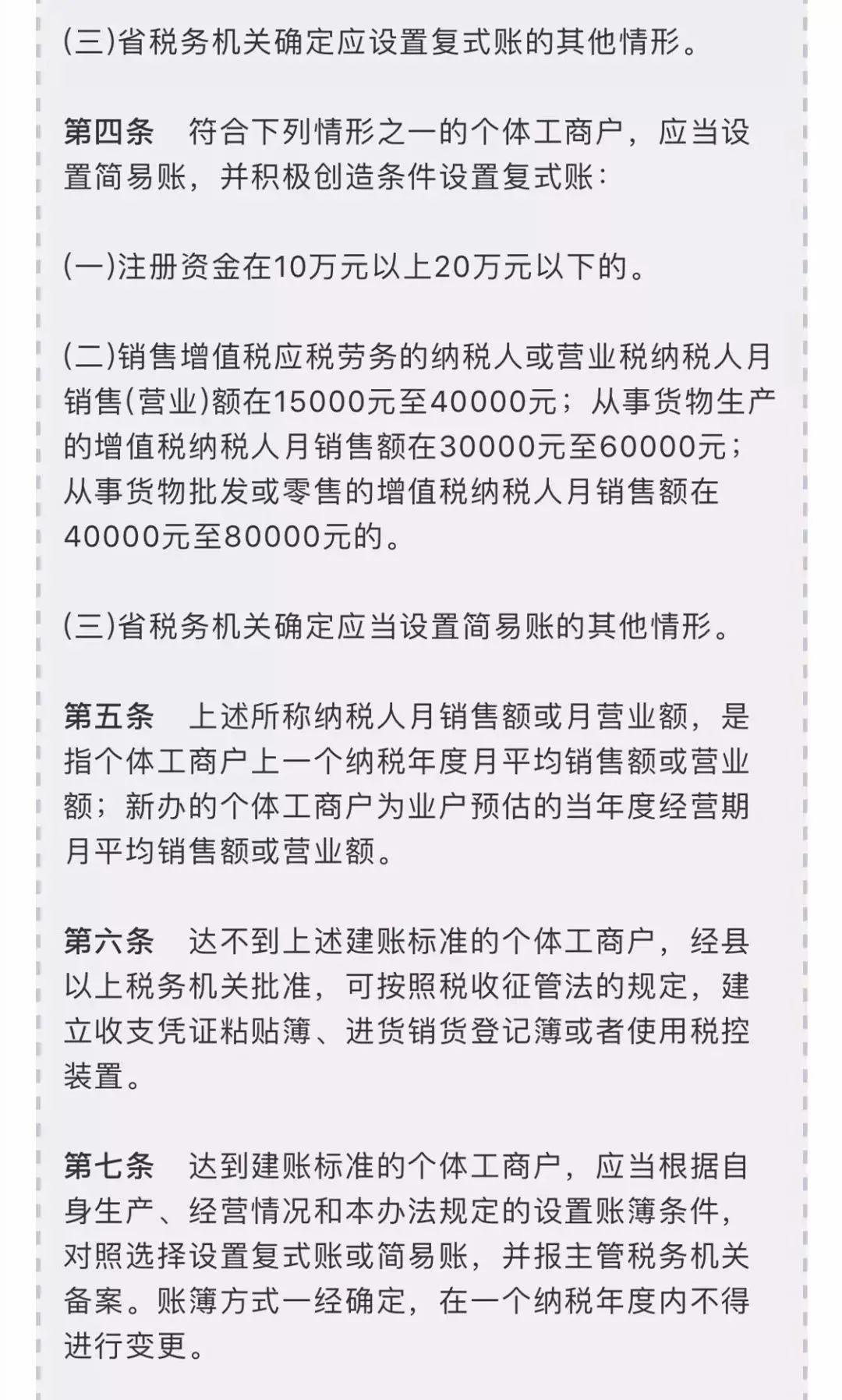 第三条 符合下列情形之一的个体工商户,应当设置复式账: